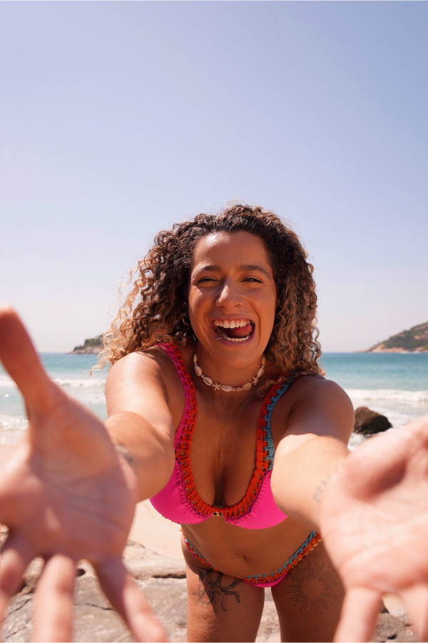Este biquíni de crochê dupla face, traz um toque artesanal e exclusivo, perfeito para quem busca estilo e conforto. O top oferece suporte com design delicado, enquanto a calcinha se ajusta ao corpo com modelagem que valoriza as curvas de maneira confortável e elegante. Ideal para quem quer um visual único e sofisticado na praia ou na piscina.             Modelagem: As peças possuem modelagem mais justa, ideal para quem busca um caimento mais ajustado ao corpo. Se preferir um ajuste mais confortável ou que cubra mais, sugerimos optar por um número maior.